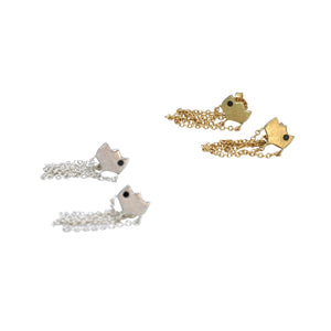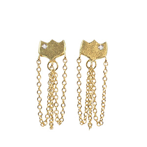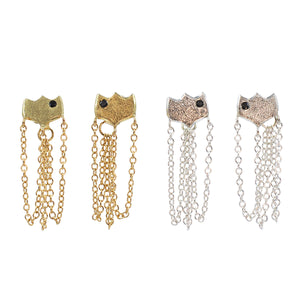 The Tulip Eternity Studs, feature a unique tulip-shaped textured shield design accented by a single diamond and three delicate chain closures. Crafted in your choice of 10K gold or sterling silver, these studs are available with stunning white or black diamonds, offering a timeless sparkle that complements any style. Perfect for adding a refined touch to everyday looks.